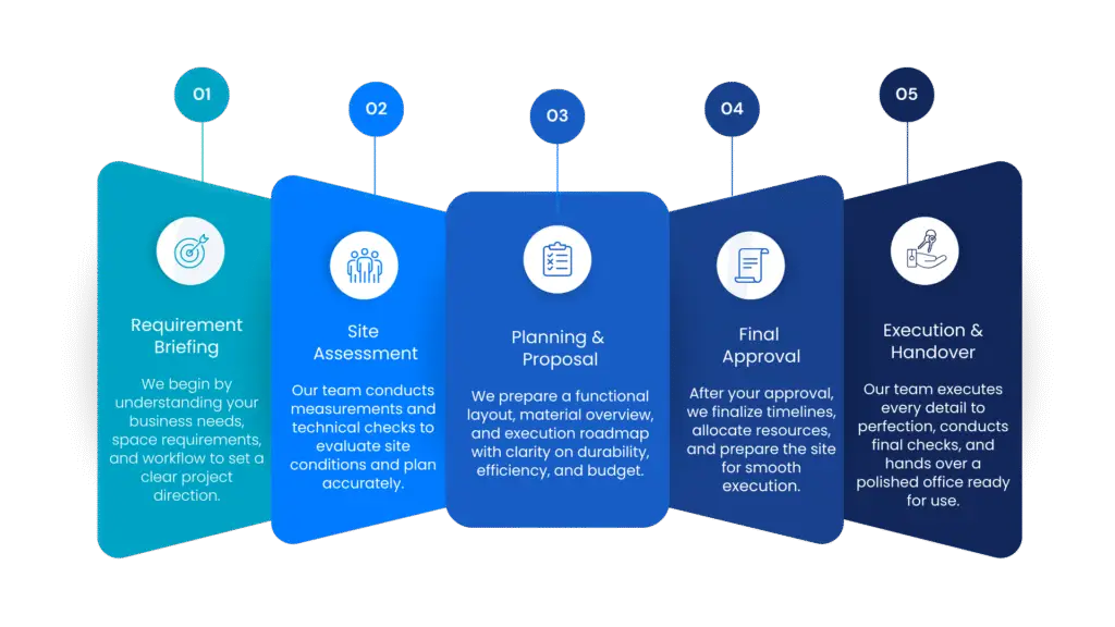 Our team brings years of hands-on experience in office interiors, project management, and turnkey execution, ensuring high-quality results across every project.